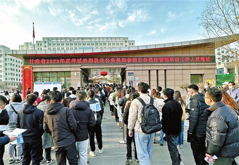 2月25日至26日,甘肅省2023年度考試錄用公務(wù)員筆試在13個(gè)市州同時(shí)進(jìn)行。今年全省共設(shè)置111個(gè)考點(diǎn)、4363個(gè)考場(chǎng),13萬名考生報(bào)名參加考試,計(jì)劃招錄4249人,比2022年招錄2364名增加79.7%,招錄總?cè)藬?shù)創(chuàng)歷史新高。