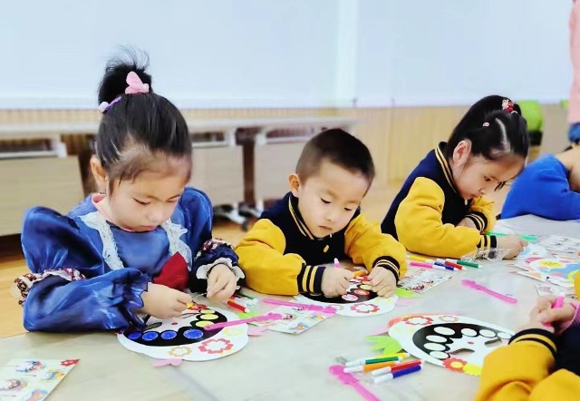 孩子們巧手繪制臉譜。山丹縣東街幼兒園供圖