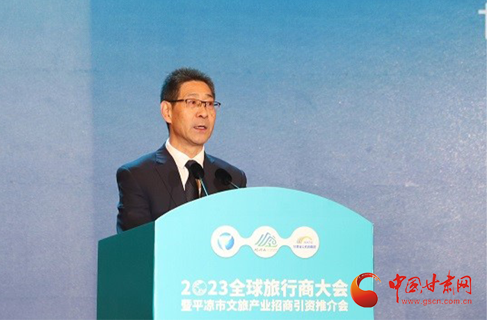 何效祖在致辭中說,平?jīng)鍪歉拭C向東開放的“門戶”城市,是風(fēng)景宜人的旅游城市,是甘肅布局的文旅康養(yǎng)基地和支撐“一核三帶”區(qū)域發(fā)展格局中的重要支點,擁有崆峒山、大云寺·王母宮、瑤池溫泉等眾多聞名遐邇的人文和自然景觀。今天,我們與平?jīng)鍪形姓?、中國旅行社協(xié)會、甘肅公航旅集團一道搭建平臺,誠邀各位嘉賓走進(jìn)甘肅、深入平?jīng)?,組織開展宣傳推介、洽談合作、展示展銷、考察踩線等系列活動,就是要引導(dǎo)大家深度感知甘肅高質(zhì)量發(fā)展的強烈愿望,實地觸摸甘肅文旅如火如荼的生動實踐,誠懇表達(dá)隴原兒女“視企業(yè)家為最寶貴財富”的真誠合作和赤誠服務(wù)之心。我們衷心希望,廣大中外旅行商和文旅專家、文旅企業(yè)家以本次大會為契機,加強交流互鑒,深化務(wù)實合作,加大在甘投資力度,組織更多游客到甘肅觀光旅游,帶動更多優(yōu)質(zhì)文旅企業(yè)和項目落戶甘肅,合力譜寫甘肅文旅高質(zhì)量發(fā)展的嶄新篇章!
