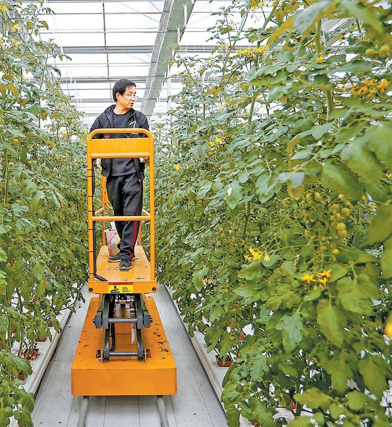 武都區(qū)石門鎮(zhèn)青隴現(xiàn)代農(nóng)業(yè)產(chǎn)業(yè)園里技術(shù)人員在管護(hù)櫻桃西紅柿
