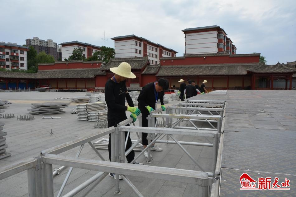 新天水訊【記者何慧娟 張彬霞】2023(癸卯)年公祭中華人文始祖伏羲大典將于6月22日舉行。日前,記者來到伏羲廟廣場看到,公祭伏羲大典文化豐碑矗立在藍天白云下,看起來雄渾壯麗,主舞臺搭建,旗桿、旗墩翻新等工作正有序開展,施工現(xiàn)場一派繁忙景象。