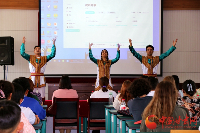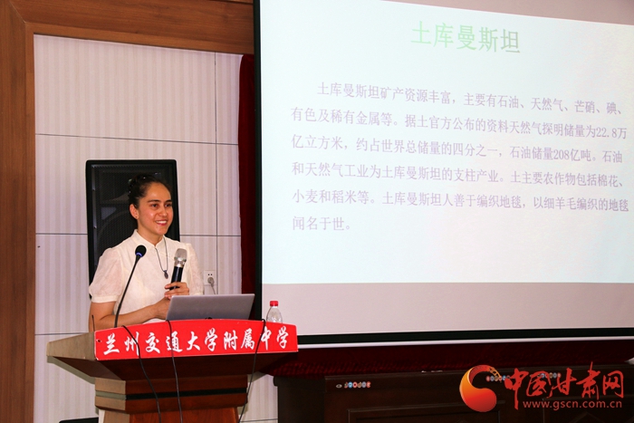 活動中,蘭州交通大學(xué)附屬中學(xué)組織七、八年級用英語表演了詩歌朗誦、話劇、合唱、獨唱等節(jié)目,來華留學(xué)生代表獻上了土庫曼斯坦傳統(tǒng)舞蹈表演,現(xiàn)場氣氛熱烈。