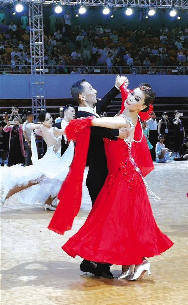 當天的蘭州奧體中心綜合館內(nèi)燈光璀璨、激情四射。伴著或動感或舒緩的音樂,優(yōu)雅浪漫的華爾茲、熱情奔放的探戈、性感狂野的倫巴……舞者們依次上場,將最優(yōu)美、最富激情、充滿藝術活力與創(chuàng)造力的高水平體育舞蹈展現(xiàn)在觀眾和裁判面前。
