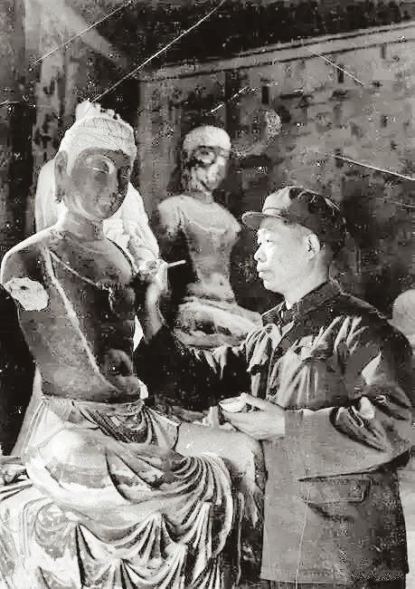 傳統(tǒng)雕塑制作是一個(gè)漫長而艱辛的過程,今天當(dāng)我們漫步莫高窟,也許你并不知道那些驚艷的藝術(shù)大作,往往是大批無名工匠幾年,甚至十幾年的藝術(shù)結(jié)晶。孫紀(jì)元父子經(jīng)過大半年的反復(fù)打磨與雕琢,于1983年年內(nèi)圓滿完成整個(gè)雕塑工程。“反彈琵琶”佇立的那一刻,孫紀(jì)元便欣然離開了敦煌,去堅(jiān)守另一方佛陀庇護(hù)的地方——天水麥積山。