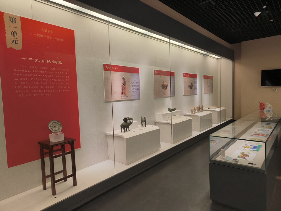 該展覽利用文物、文物展板和生肖文創(chuàng)相結(jié)合的模式,形成墻面、展柜和地面上下聯(lián)動(dòng),又協(xié)調(diào)統(tǒng)一的互動(dòng)關(guān)系,向廣大觀眾立體式呈現(xiàn)天水悠久的伏羲文化文明史和伏羲時(shí)代的智慧,突出彰顯天水作為中國(guó)文明史起源地在中華文明發(fā)展歷史進(jìn)程中的重要作用,向世界詮釋中國(guó)龍文化的淵源與博大,弘揚(yáng)中華文明的悠久歷史,感知中華文化的博大精深。律回春漸,新元肇啟,歡迎大家走進(jìn)天水市博物館,共度一個(gè)祥和喜慶的文化年!