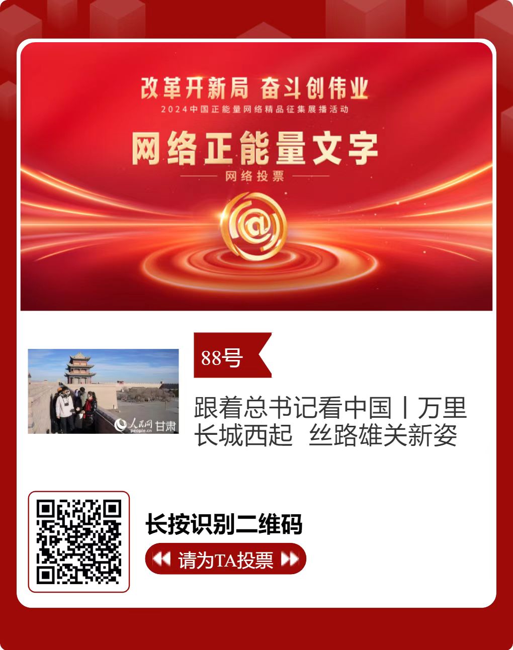 2024中國正能量網(wǎng)絡(luò)精品,嘉峪關(guān)入圍作品邀您投票!