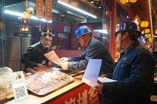 “老板,您的攤位線路沒問題,別讓電器超負(fù)荷運(yùn)行,出現(xiàn)任何用電問題請及時聯(lián)系我們。”2月3日晚,在敦煌燒烤爭霸賽現(xiàn)場,國網(wǎng)敦煌市供電公司工作人員正在對賽場線路設(shè)備進(jìn)行巡視檢查,以確保競賽的順利進(jìn)行。
