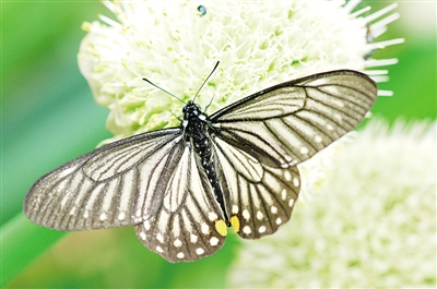 我最先注意到的,是一只半透明的黑色蝴蝶,看上去很像斑蝶,又總覺得有什么地方不對。后來知道了,它就是小黑斑鳳蝶。它擬態(tài)有毒的斑蝶,能讓部分天敵避而遠之。如果這是一個設(shè)計或安排的話,那可真是巧妙。
