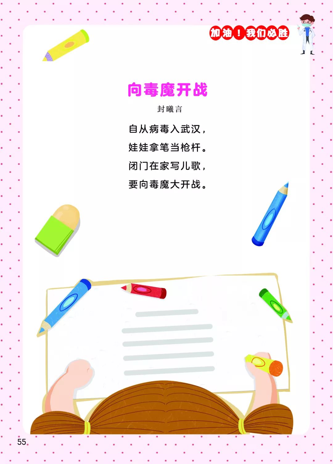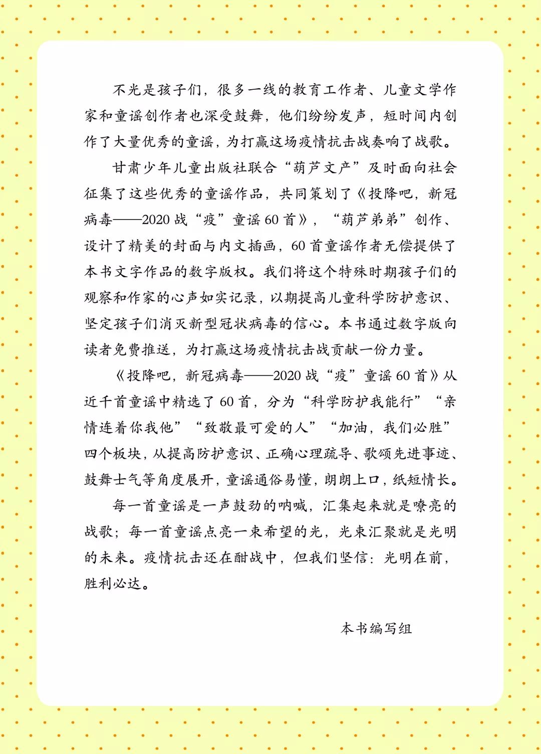 以下為《投降吧,新冠病毒——2020戰(zhàn)“疫”童謠60首》一書全部內容: