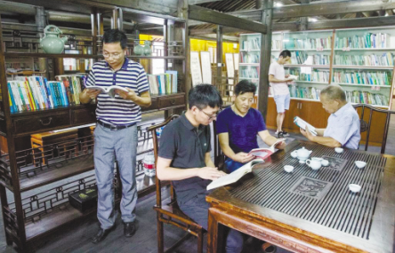 數(shù)字化建設(shè)之外,還有許多農(nóng)家書屋加速迭代升級,農(nóng)家書屋+詩畫社、農(nóng)家書屋+民宿、農(nóng)家書屋+學校……農(nóng)村基礎(chǔ)閱讀設(shè)施不斷延伸著閱讀與致富的新功能。現(xiàn)在,當人們行走在浙江省慈溪市的田間地頭,有著年代感的文物古建筑、環(huán)境優(yōu)雅的茶館民宿、人氣頗高的田園農(nóng)莊等各具特色的閱讀空間吸人眼球。近年來,浙江省慈溪市委探索推進“鄉(xiāng)村書房”建設(shè),選擇將閱讀服務(wù)嵌入到鄉(xiāng)村的準公共娛樂空間,一個個錯落在慈溪田野鄉(xiāng)間的“鄉(xiāng)村書房”,創(chuàng)新拓展了農(nóng)村閱讀的服務(wù)空間,助推了文化傳播和共享。