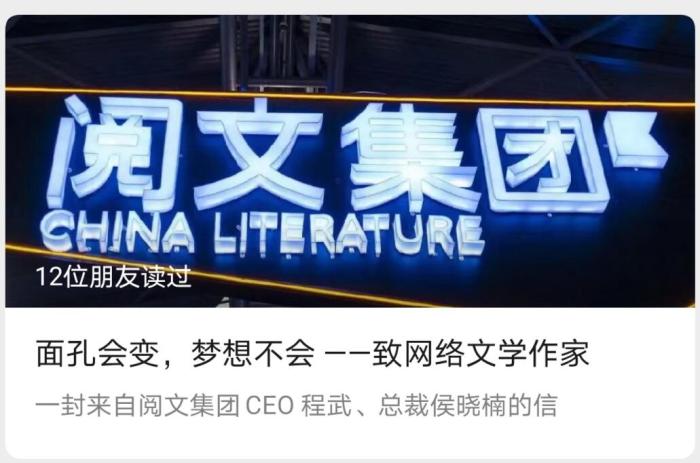 6日晚,閱文集團就新管理層當日與多位作家的懇談會發(fā)布文章。