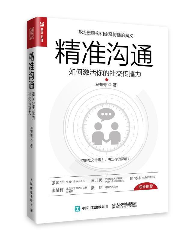 作為資深傳媒人和品牌傳播專(zhuān)家,在近日出版的《精準(zhǔn)溝通》一書(shū)中,馬菁菁以通俗易懂的方式向普通大眾介紹傳播學(xué)的一些經(jīng)典理論,嘗試以傳播學(xué)的視角分析和歸納日常人際交往與溝通中常見(jiàn)的問(wèn)題,并運(yùn)用傳播學(xué)的理論和方法為讀者提供一種新的解決思路。