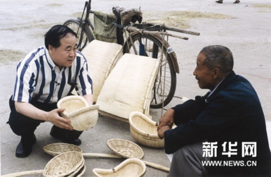 莫言與當?shù)剜l(xiāng)親交流