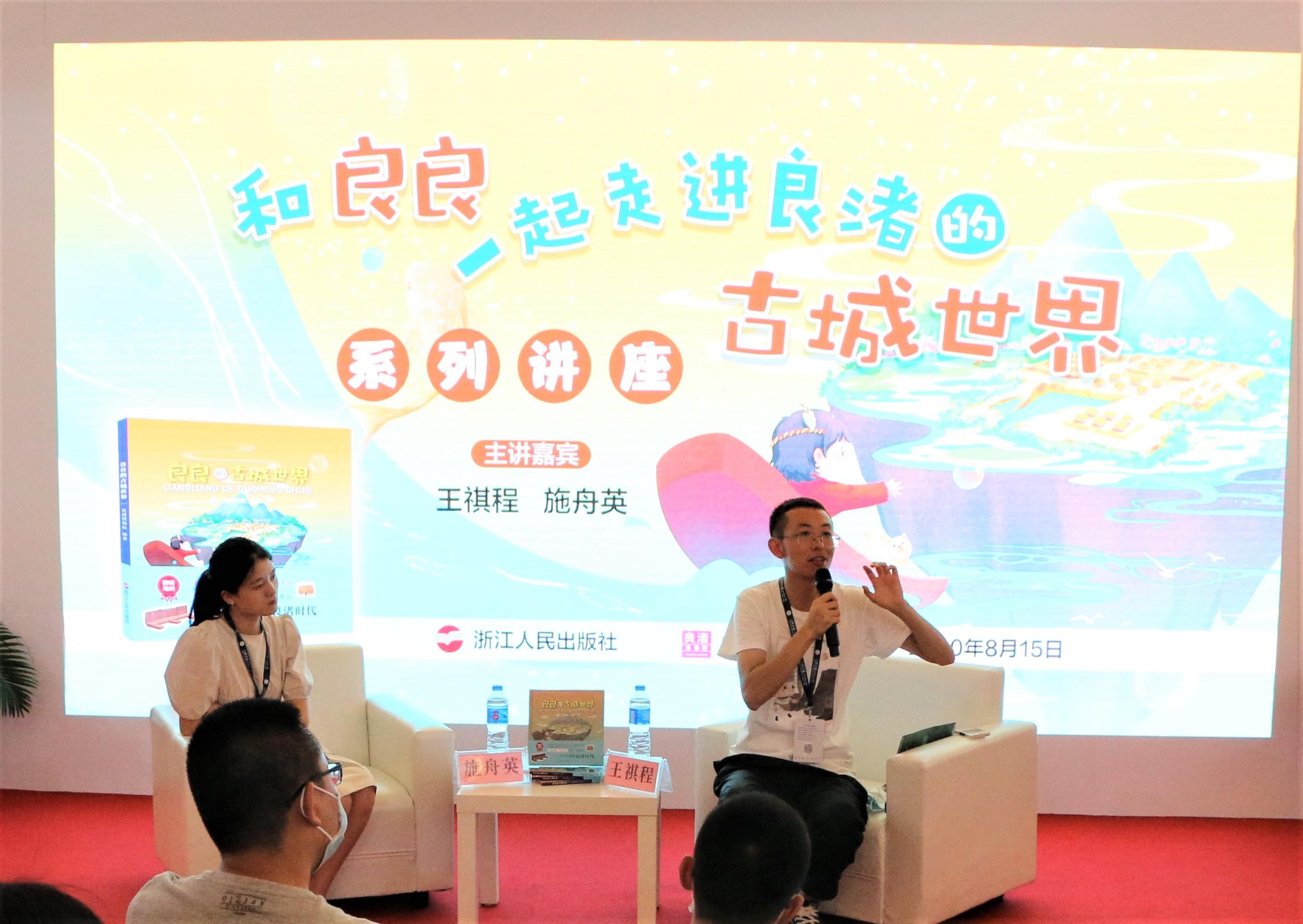 現(xiàn)場(chǎng),王祺程與施舟英生動(dòng)地講述了良渚文化與良渚古城的概況,并分享了“良良”系列繪本背后的故事。
