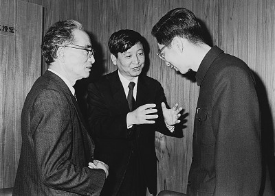 1976年秋天,增田涉(左)與魯迅之子周海嬰(右)在日本仙臺會面,中間系本文作者,在為兩人當(dāng)翻譯