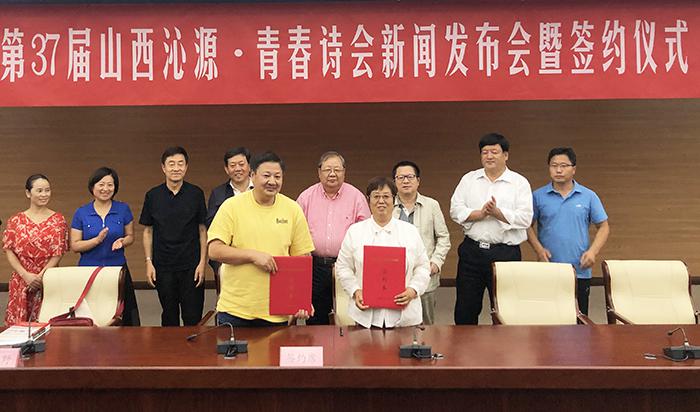 沁源縣委書記金所軍介紹沁源縣盛產(chǎn)油松、褐馬雞,村村有秧歌隊和籃球場,有山有水,美麗又美好。他將作為“全國森林旅游示范縣”的沁源縣詩意概括為“三晉大地的香格里拉”“近在咫尺的桃花源”。沁源縣委宣傳部部長黃貴河對沁源縣的文學創(chuàng)作情況及第37屆“青春詩會”活動承辦設(shè)想進行了介紹。發(fā)布會結(jié)束后,沁源縣政府副縣長李建萍與《詩刊》事業(yè)發(fā)展部副主任藍野簽定了合作協(xié)議。