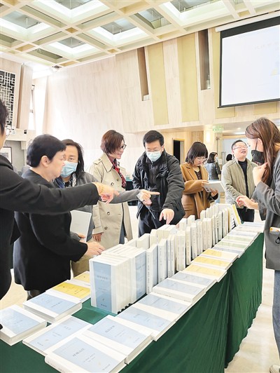 中場休息,與會專家學(xué)者圍著叢書第一輯熱烈交談。