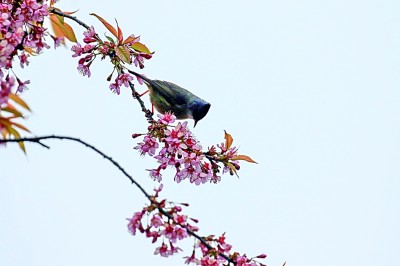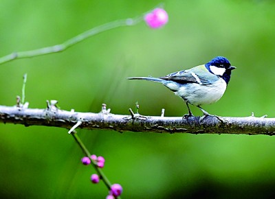 湖南省龍山縣,花兒開放,引來小鳥“鬧春戲花”。新華社發(fā)