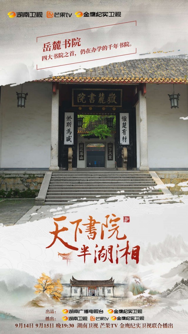 中國(guó)青年報(bào)客戶端訊(中青報(bào)·中青網(wǎng)記者 蔣肖斌)人文紀(jì)錄片《天下書院半湖湘》于9月14日、15日晚,在湖南衛(wèi)視、芒果TV、金鷹紀(jì)實(shí)等平臺(tái)同步推出。