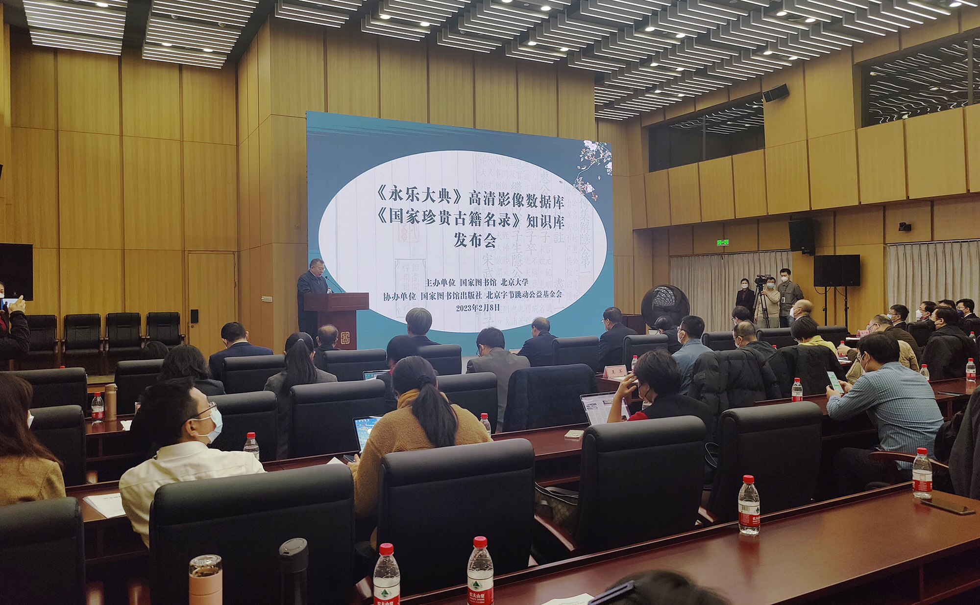 新華網(wǎng)北京2月9日電(李然)2月8日,“《永樂大典》高清影像數(shù)據(jù)庫”及“《國家珍貴古籍名錄》知識(shí)庫”在國家圖書館發(fā)布。發(fā)布會(huì)由國家圖書館(國家古籍保護(hù)中心)聯(lián)合北京大學(xué)主辦,國家圖書館出版社和北京字節(jié)跳動(dòng)公益基金會(huì)協(xié)辦。文化和旅游部黨組成員、副部長饒權(quán),北京大學(xué)黨委書記郝平,中宣部出版局局長馮士新,國家圖書館館長、國家古籍保護(hù)中心主任熊遠(yuǎn)明,北京大學(xué)副校長王博,北京字節(jié)跳動(dòng)公益基金會(huì)副理事長兼秘書長李濤出席活動(dòng)。專家學(xué)者代表、數(shù)據(jù)庫建設(shè)項(xiàng)目組成員代表、部分新聞媒體代表等參加會(huì)議。會(huì)議由國家圖書館常務(wù)副館長、國家古籍保護(hù)中心副主任張志清主持。