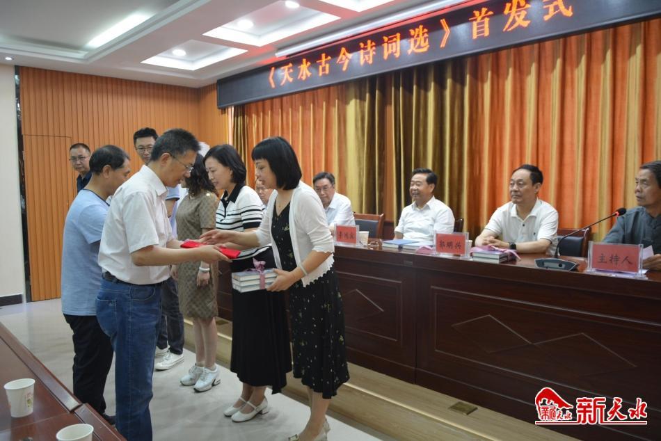 首發(fā)式上,天水市詩(shī)詞學(xué)會(huì)還為天水市圖書館、天水市檔案館、秦州區(qū)圖書館等單位贈(zèng)送了《天水古今詩(shī)詞選》。