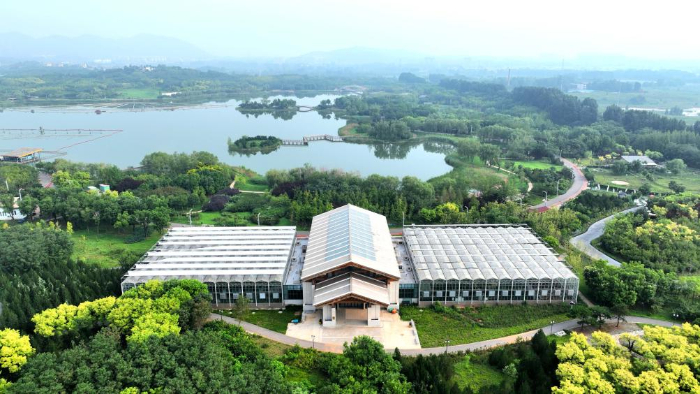 8月9日拍攝的位于河北省石家莊市鹿泉區(qū)龍泉湖公園內(nèi)的一處公園書房(無(wú)人機(jī)照片)。
