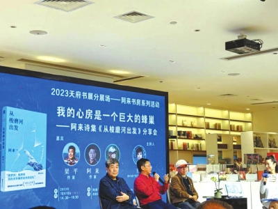 2023天府書展,各種名家分享會讓讀者應(yīng)接不暇。除了成都世紀(jì)城新會展中心主會場,分會場的活動也精彩紛呈。10月15日下午,在西部文化產(chǎn)業(yè)中心阿來書房,阿來、葉舟、梁平三位名家開啟“我的心房是一個巨大的蜂巢——阿來詩集《從梭磨河出發(fā)》分享會”。三人上演老友記,分享會由阿來的青春期談起,氛圍詼諧幽默、愜意深情。