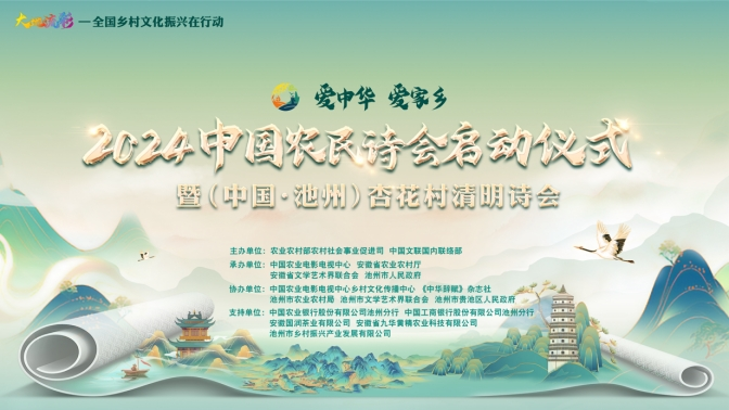 大地流彩,詩(shī)賦“三農(nóng)”。3月31日,“大地流彩—全國(guó)鄉(xiāng)村文化振興在行動(dòng)”重點(diǎn)活動(dòng)“愛中華愛家鄉(xiāng)”2024中國(guó)農(nóng)民詩(shī)會(huì)啟動(dòng)儀式暨(中國(guó)·池州)杏花村清明詩(shī)會(huì)在安徽池州杏花村文化旅游區(qū)舉辦,主題為“春和景明詩(shī)出池州”。本次活動(dòng)由農(nóng)業(yè)農(nóng)村部農(nóng)村社會(huì)事業(yè)促進(jìn)司、中國(guó)文聯(lián)國(guó)內(nèi)聯(lián)絡(luò)部主辦,中國(guó)農(nóng)業(yè)電影電視中心、安徽省農(nóng)業(yè)農(nóng)村廳、安徽省文學(xué)藝術(shù)界聯(lián)合會(huì)、池州市人民政府承辦。