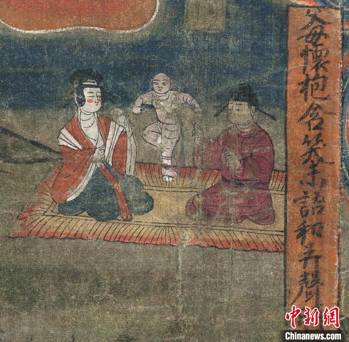 中新網(wǎng)蘭州6月1日電 (記者 馮志軍 李亞龍 高瑩)懷胎、哺育、搖籃、嬉戲、教育……甘肅省博物館所藏“報父母恩重經(jīng)變絹畫”,由十余幅圖像組成的連環(huán)畫敘述了“父母養(yǎng)育,含辛茹苦”“褒揚(yáng)孝子,鞭撻嬌子不孝”等中國式孝道。其雖以宣揚(yáng)佛教孝道思想為題材,卻是一部被杜撰千年的“偽經(jīng)”,意在將中國傳統(tǒng)孝親文化借“佛”之口弘揚(yáng)。