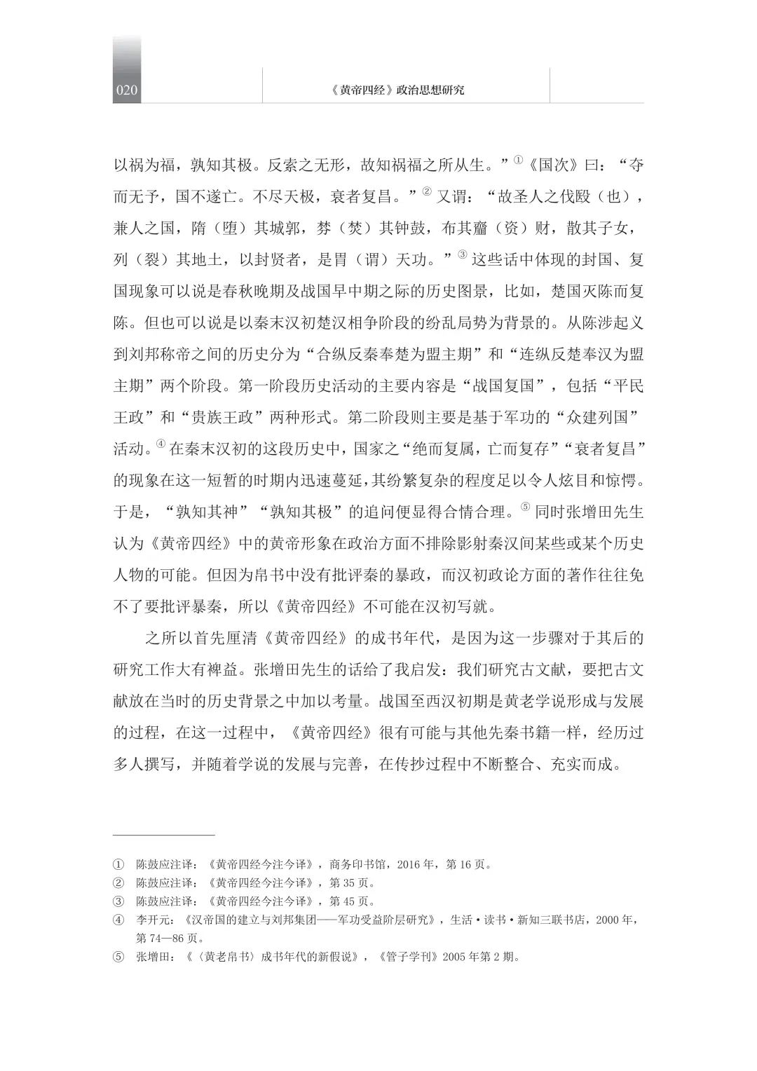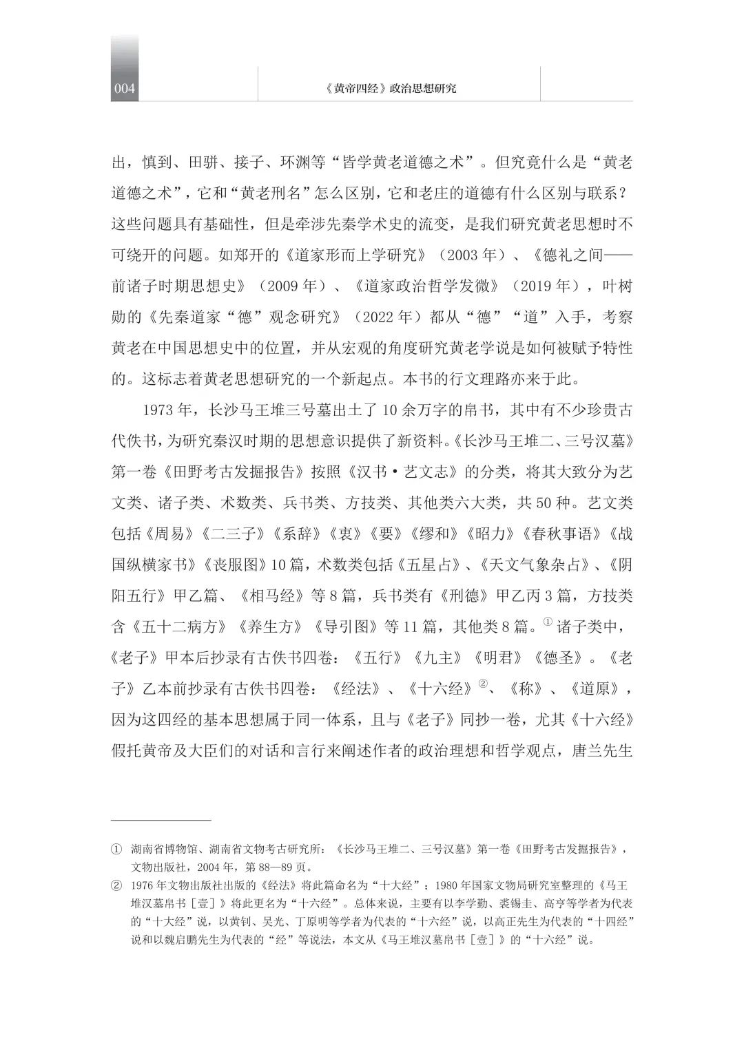 《黃帝四經(jīng)》作為東周之前各朝修身治國的指導(dǎo)性經(jīng)典,其修身治世功用迄今依然具有極高的現(xiàn)實(shí)意義和指導(dǎo)價(jià)值。本書以《黃帝四經(jīng)》為研究起點(diǎn),重點(diǎn)探索黃老政治思想中的重要概念,并試圖從核心詞匯“道”“德”概念的演變及其相互作用來探究黃老學(xué)說的起源發(fā)展的學(xué)術(shù)邏輯,尤其從“德”含義的拓展與遷移去分析黃老哲學(xué)政治德性的建立,隨之引出黃老政治思想中的重要概念“道法”“刑名”“刑德”“因循”等,并希望由此描摹出黃老政治思想的特性。