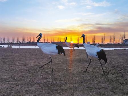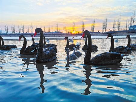 冬日的張掖國家濕地公園丹頂鶴、黑天鵝、朗德鵝、斑頭雁等沐浴在清晨的陽光下。這里良好的生態(tài)環(huán)境吸引了眾多候鳥棲息。通訊員 成 林