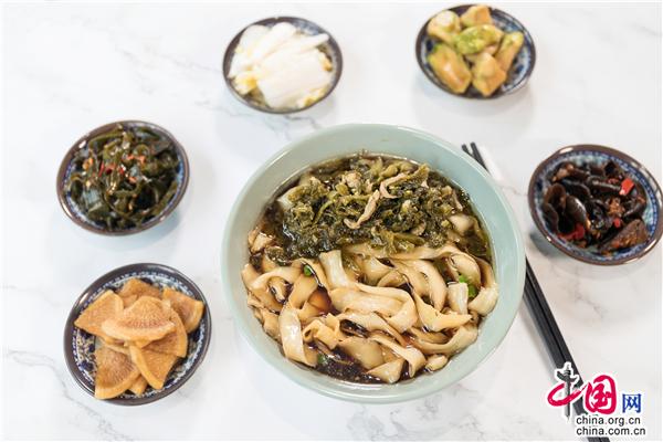 貞味江南一碗萬三手搟面,入口筋道柔韌,面香濃郁,Q彈順滑。佐以清爽可口的阿婆菜、酥爛脫骨的萬三蹄,就著幾碟花式的小菜,呲溜呲溜吃個快意,美則美矣!