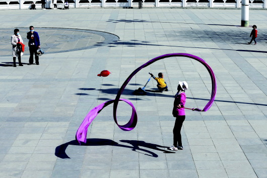 3月22日,市民在綠地廣場放風(fēng)箏。記者  楊昕 攝