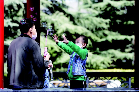 3月22日,柳湖公園,吹泡泡。記者 楊昕 攝