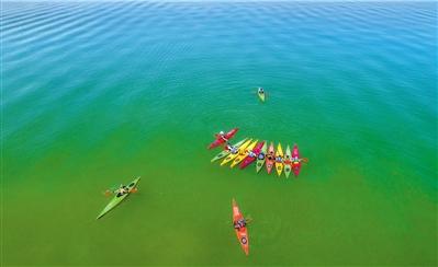 皮劃艇隊運(yùn)動員在劉家峽水庫國家亞高原水上訓(xùn)練基地訓(xùn)練