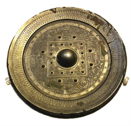 漢代設(shè)專門的機(jī)構(gòu)和官職管理銅鏡制作,有記載:“少府之下有尚方令一人,御用及官制銅鏡均由尚方制作”。所謂“規(guī)矩紋”是一種類似英文字母“T”“V”“L”的符號(hào)組成,這三種符號(hào)裝飾規(guī)整,稱之為“規(guī)矩紋”。在銅鏡之上一般還有瑞獸圖案,起到了祈福保佑的作用。