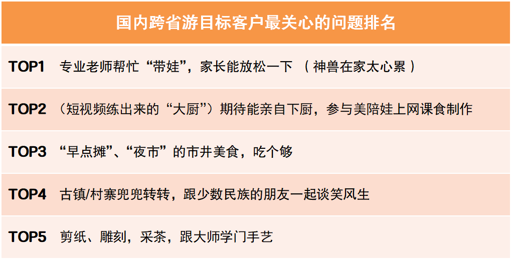 通過針對中青旅遨游網(wǎng)會員、中青旅聯(lián)盟成員單位的忠實客戶等群體的調(diào)研,以及近半年中青旅遨游網(wǎng)搜索、瀏覽的監(jiān)測數(shù)據(jù)進行綜合分析。結(jié)果顯示,西南和西北是客戶喜好程度最高的兩大地域;云南、江蘇、新疆、三亞、陜西是客戶喜好程度最高的五大熱門目的地??蛻糇铌P心的問題,帶娃、參與、美食、閑逛、學藝則位列前五名。