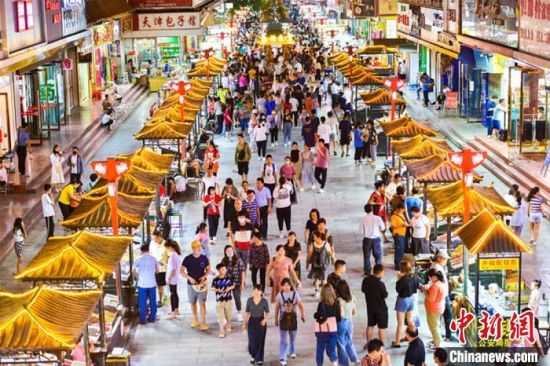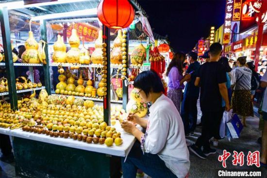 7月29日,游客在敦煌旅游工藝品一條街上漫步,體驗(yàn)濃郁的民俗風(fēng)情和敦煌文化。 王斌銀 攝