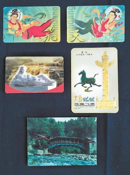甘肅的自然風(fēng)光優(yōu)美,人文歷史悠久,經(jīng)過不斷挖掘,精心保護(hù),成為人們旅游、觀光的理想之地。北京中鈔信用卡廠于2001年制作的“飛”字片、“天”字片“飛天”對卡年歷片,中國工商銀行甘肅分行于2000年設(shè)計(jì)了《黃河母親》年歷片,中國農(nóng)業(yè)銀行甘肅分行于1987年設(shè)計(jì)的《興隆山握橋風(fēng)光》年歷片,中國遠(yuǎn)洋運(yùn)輸公司上海分公司于1978年制作的《馬踏飛鳥》年歷片,都為甘肅旅游風(fēng)光作了宣傳。