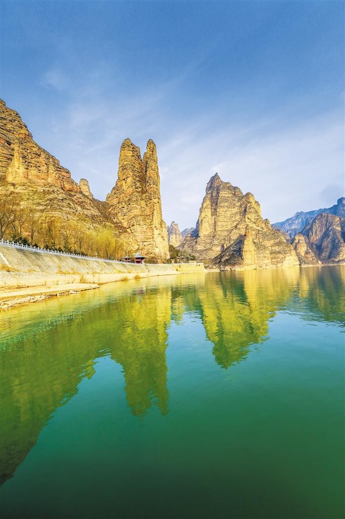 炳靈寺世界文化遺產(chǎn)旅游區(qū)的標(biāo)志姊妹峰。首席記者 田蹊 攝