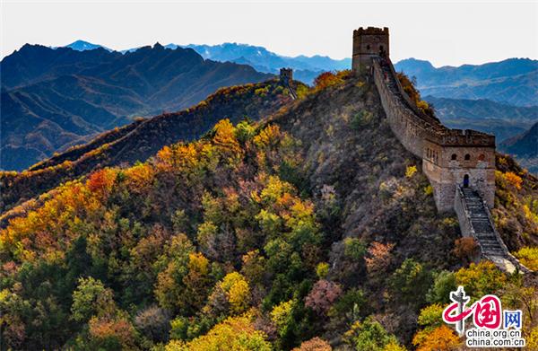 金山嶺長城四季分明,秋季飛黃流丹,層林盡染。