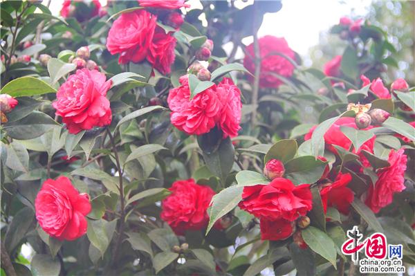 一輪艷陽照四方,一席春風綠千山。山茶花是中國傳統名花,也是世界名花之一。2月21日,朋友相約,從縣城出發(fā),約8公里就進入九龍生態(tài)園,姿態(tài)各異的山茶花已進入盛花期,樹姿虬勁優(yōu)美,綠葉四季不凋,一朵一朵的茶花大如牡丹,燦如云霞,風姿綽約,耀眼生輝!植株形姿優(yōu)美,葉濃綠而光澤,花形艷麗繽紛,美艷了。有的鮮紅如火、有的嬌羞染粉、有的晶瑩潔白……滿園茶花勝景。不經意間清風吹過,暗香徐來,朵朵花兒隨風舞。陽光穿透葉子的縫隙,落在花間小道上,花香彌漫整個鼻腔,放低自己,品味花香,眼里有花、心里有花,人生就會像花一樣美麗。