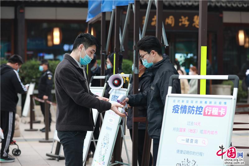 現(xiàn)場引導出示“健康碼”、測體溫,景區(qū)常態(tài)化防疫有條不紊;“周莊怎么玩”旅游目的地平臺提供專屬消費體驗,工作人員耐心解疑答惑,志愿者引導間隔出游,碼頭人員細心攙扶……