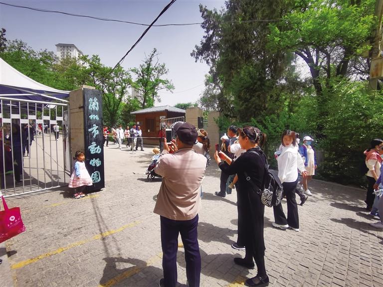 “我要和動(dòng)物園的大門合影” “快來給我和‘蘭州市動(dòng)物園’的大牌子拍張照”……5月7日10時(shí)許,前往蘭州市動(dòng)物園游玩的市民絡(luò)繹不絕,大門口懸掛著的略顯斑駁的黑底綠字的“蘭州市動(dòng)物園”的門牌,仿佛是最能觸動(dòng)人們記憶的“坐標(biāo)點(diǎn)”,大家排隊(duì)再和它照張相成為進(jìn)園的固定儀式。