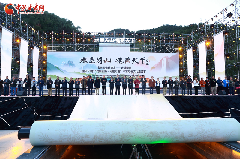 中國甘肅網(wǎng)5月20日訊(本網(wǎng)記者 靳佩佩 文/圖)5月19日晚,2021年“交響絲路·問道崆峒”平?jīng)鲠轻嘉幕糜喂?jié)開幕式暨“水墨關(guān)山·槐蔭天下”書畫頻道進(jìn)萬家——走進(jìn)崇信主題晚會在崇信縣龍泉廣場啟幕。