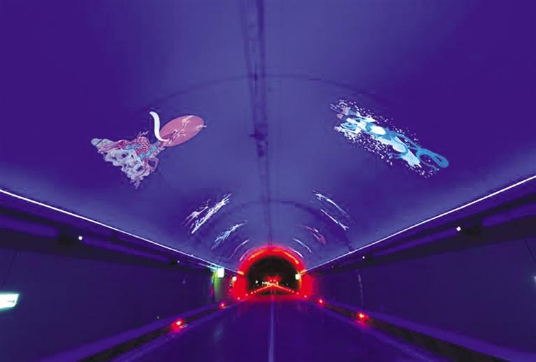 景觀照明系統(tǒng)主體效果充分融合甘肅文化特色,采用“飛天壁畫”“沙漠駝隊(duì)”等元素,利用洗墻燈襯托底色,投影燈展現(xiàn)景觀效果,實(shí)現(xiàn)為司乘人員打造人在畫中游的視覺感官,有效解決隧道內(nèi)長(zhǎng)時(shí)間駕駛的視覺疲勞和情緒波動(dòng),提升司乘人員駕駛舒適度。