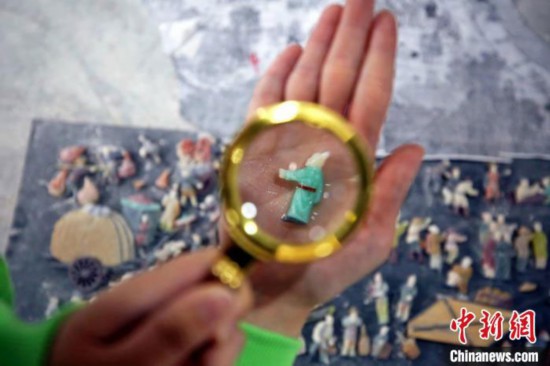 “制作這件彩石鑲嵌作品要有很深的功底,特別是對人物臉部細節(jié)的處理,要想做到3000多個人物神態(tài)逼真,難度非常大。”李成者說,有的人物只有米粒大小,要拿著放大鏡雕刻,對師傅的手藝要求非常高。