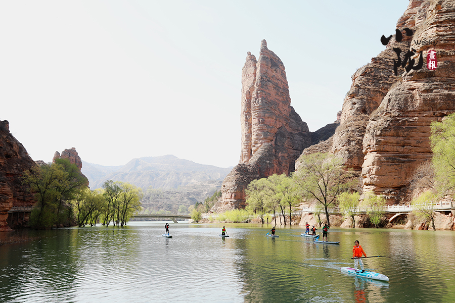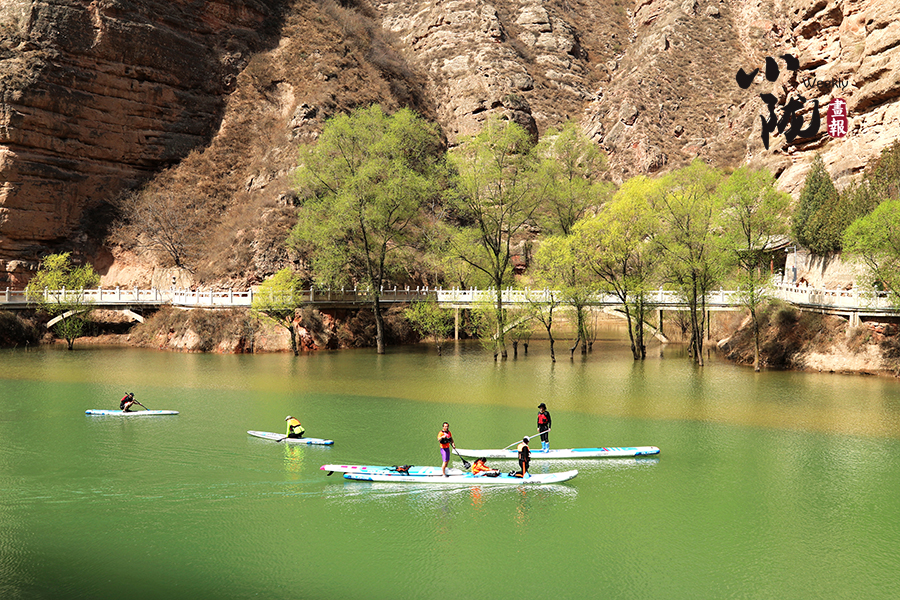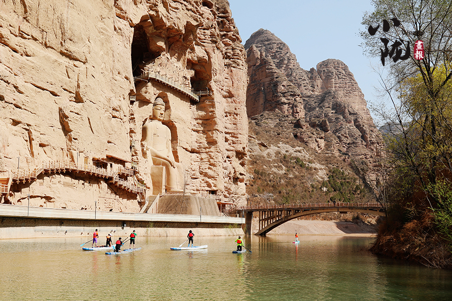 清明前后,炳靈湖水位上漲,寺溝峽谷碧水蕩漾,垂柳依依,景色宜人,槳板愛好者和游客在這里泛舟,以更輕盈的方式邂逅世界文化遺產(chǎn),摩崖大佛、奇峰赤壁、碧水垂柳,構成了一幅幅絕美的畫圖。