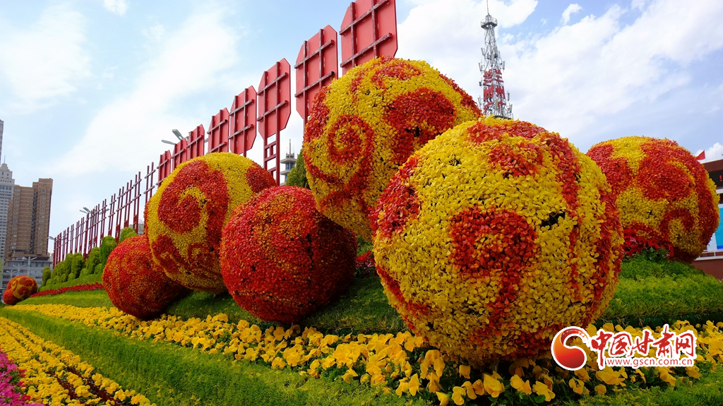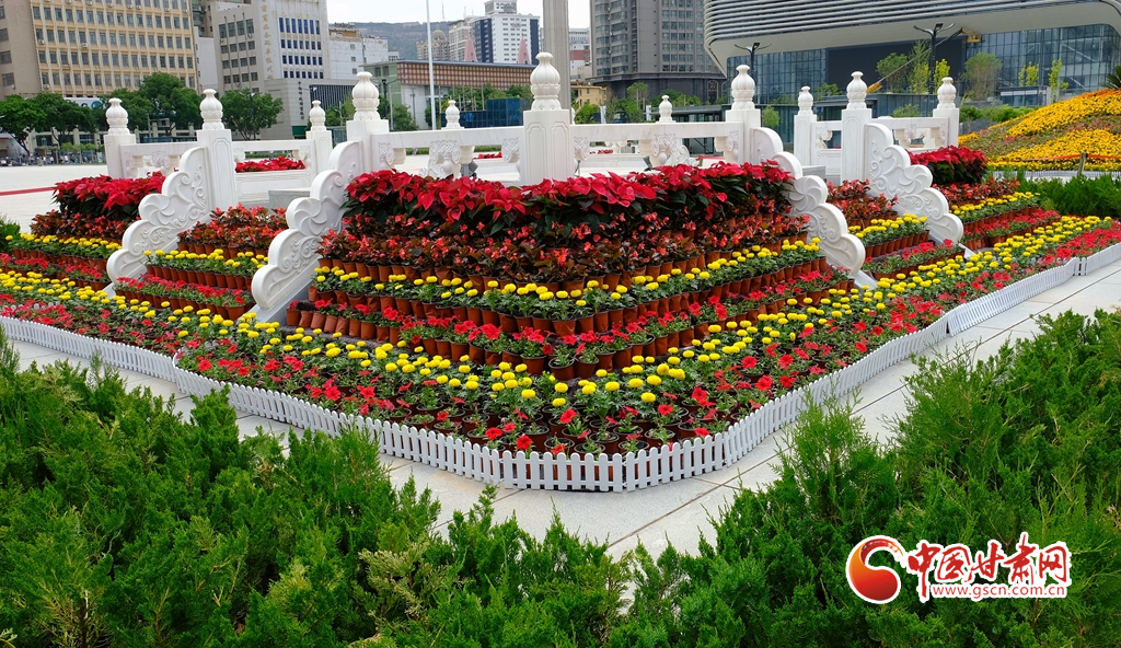 蘭州市東方紅廣場全新的花壇喜迎省第十四次黨代會