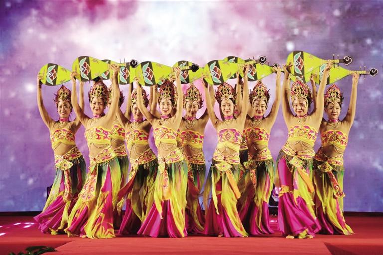 晚上8點,“博物館之夜”主題演出在老兵合唱團(tuán)帶來的大合唱《領(lǐng)航》中正式拉開帷幕。恢弘大氣的情景舞蹈《張騫出塞》、充滿年輕活力的《追夢人》、曼妙婀娜的《敦煌樂舞》……一個個精彩的節(jié)目,一陣陣熱烈的歡呼與掌聲,臺上臺下情景交融,共同完成了這場流光溢彩的文藝盛宴。